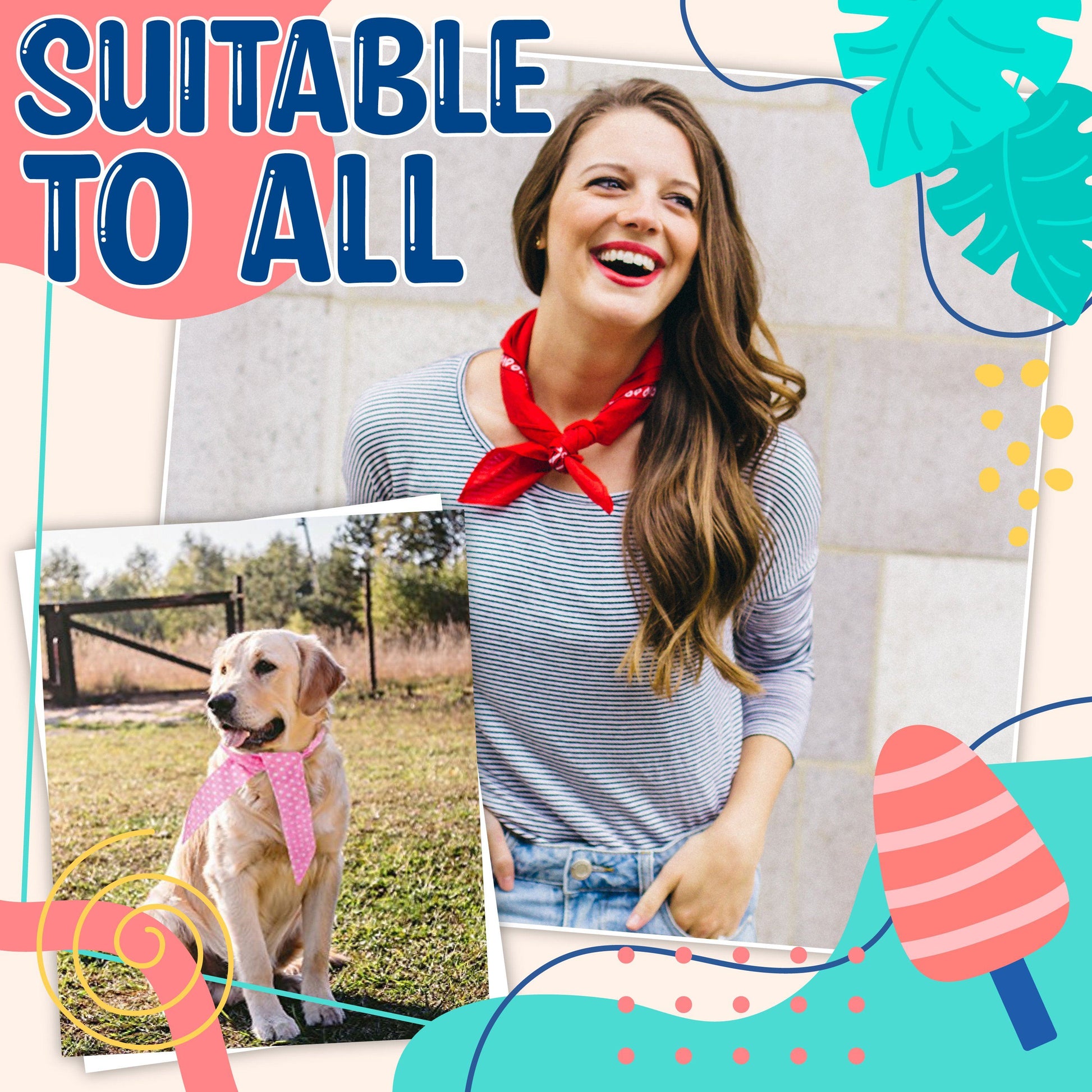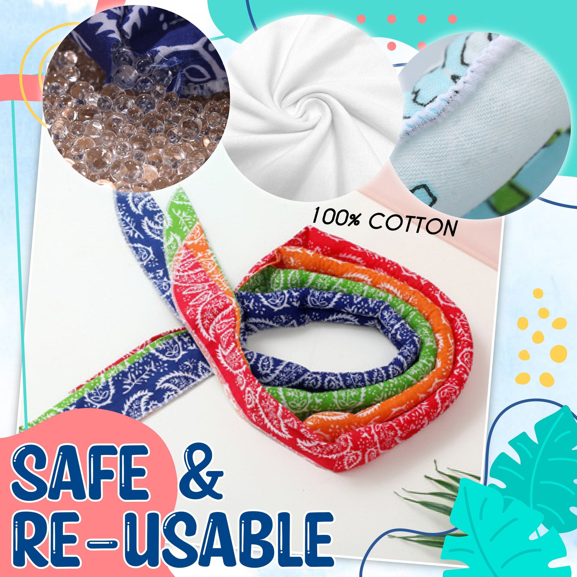 Perfect to be worn as a cooling scarf, bandana, headband, wristband, etc., as well as a pet collar to prevent over-heating. For both human & pets.