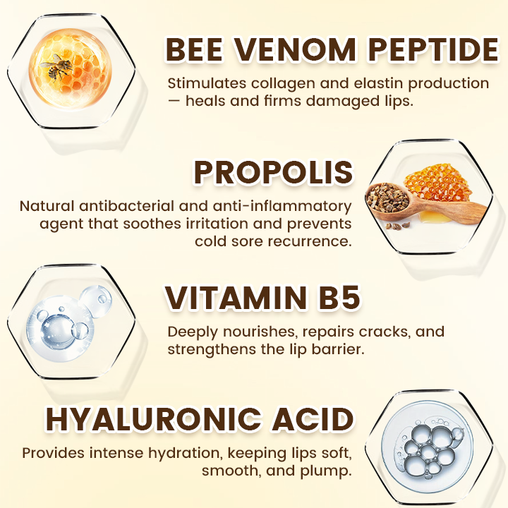 Ceoerty® BeeLixir Lip Repair Balm combines Bee Venom Peptide, Propolis, and Vitamin B5 to deeply repair tissue, eliminate bacteria, and rebuild your lips' natural defense — so your lips stay soft, smooth, and healthy again.