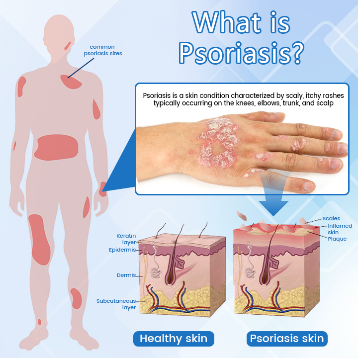 Psoriasis causes rapid skin cell buildup, creating thick, scaly, inflamed plaques with itching, redness, and flaking. Timilk® DermaMag Magnesium Repair Spray calms inflammation, reduces plaque buildup, and restores smoother, healthier skin in just one week