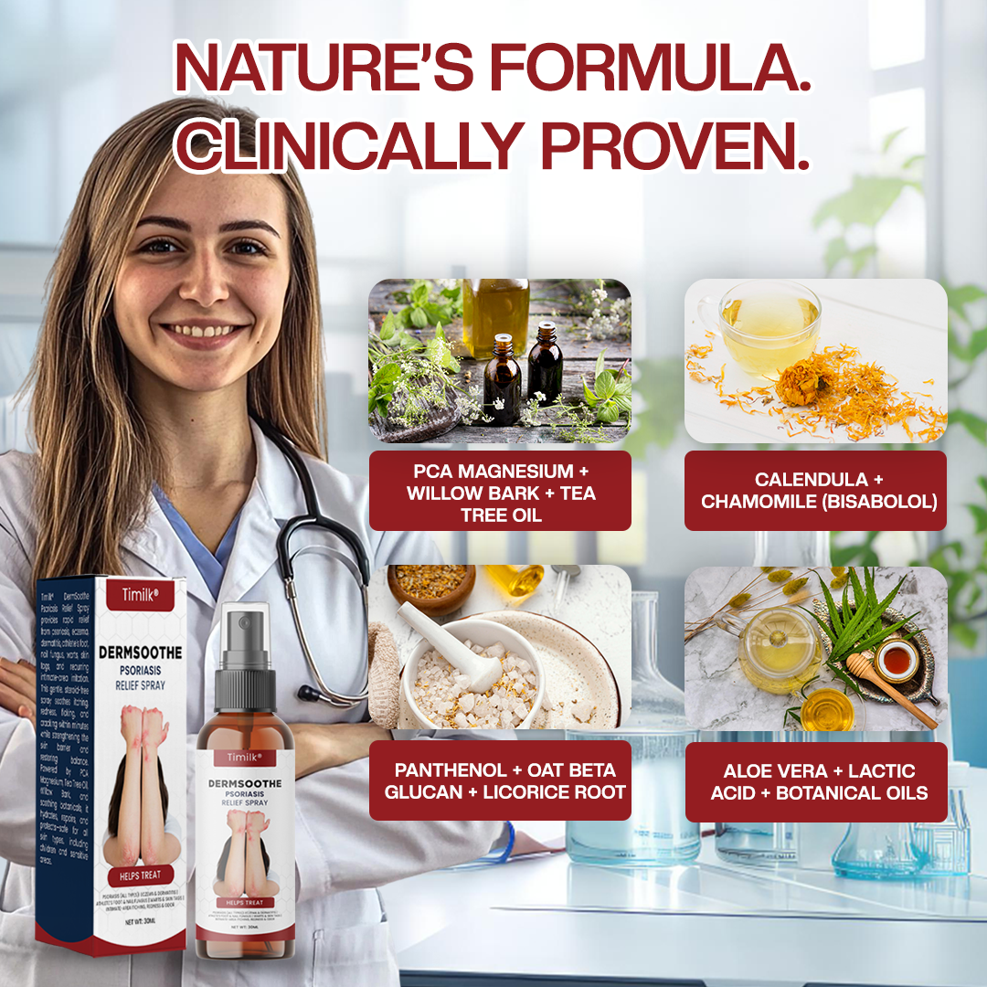 With thousands of bottles sold and praised by dermatology experts, Timilk® DermSoothe Psoriasis Relief Spray is quickly becoming the trusted solution for soothing stubborn skin concerns. Clinical reviews show zero reported side effects and an impressive 98.9% satisfaction rate. We’re so confident in its results that we back every bottle with a 90-day, 100% money-back guarantee—no questions asked.