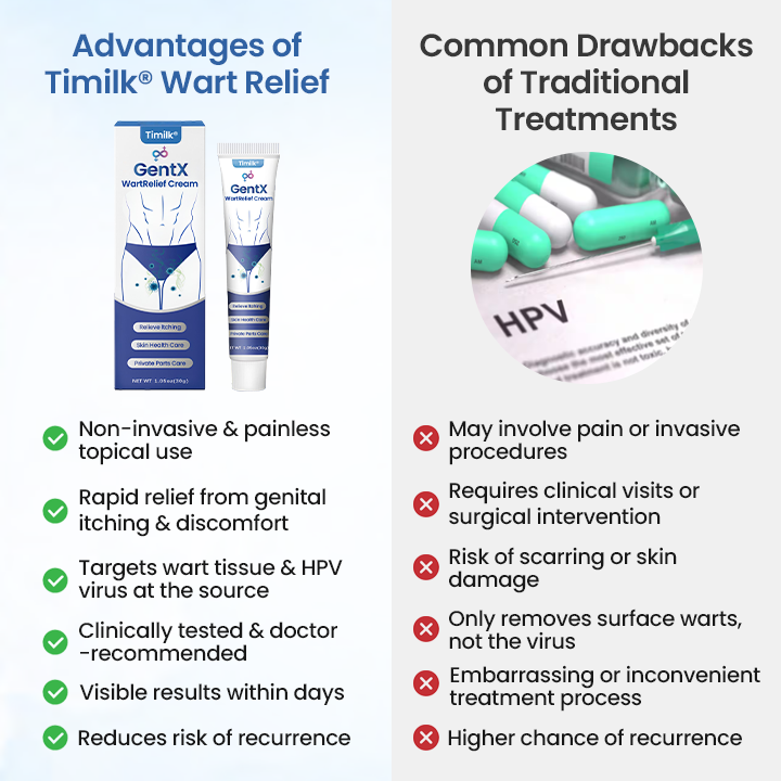 Timilk® GentX WartRelief Cream was developed as a clinically informed, science-based solution for men seeking rapid, gentle, and effective relief from genital warts and related symptoms. Designed to address both the visible lesions and the underlying HPV infection, it offers dual-action therapy that not only removes wart tissue but also helps eliminate the viral source—promoting healthier skin and reducing recurrence risk.