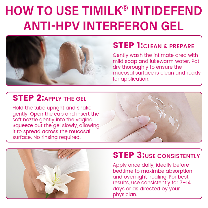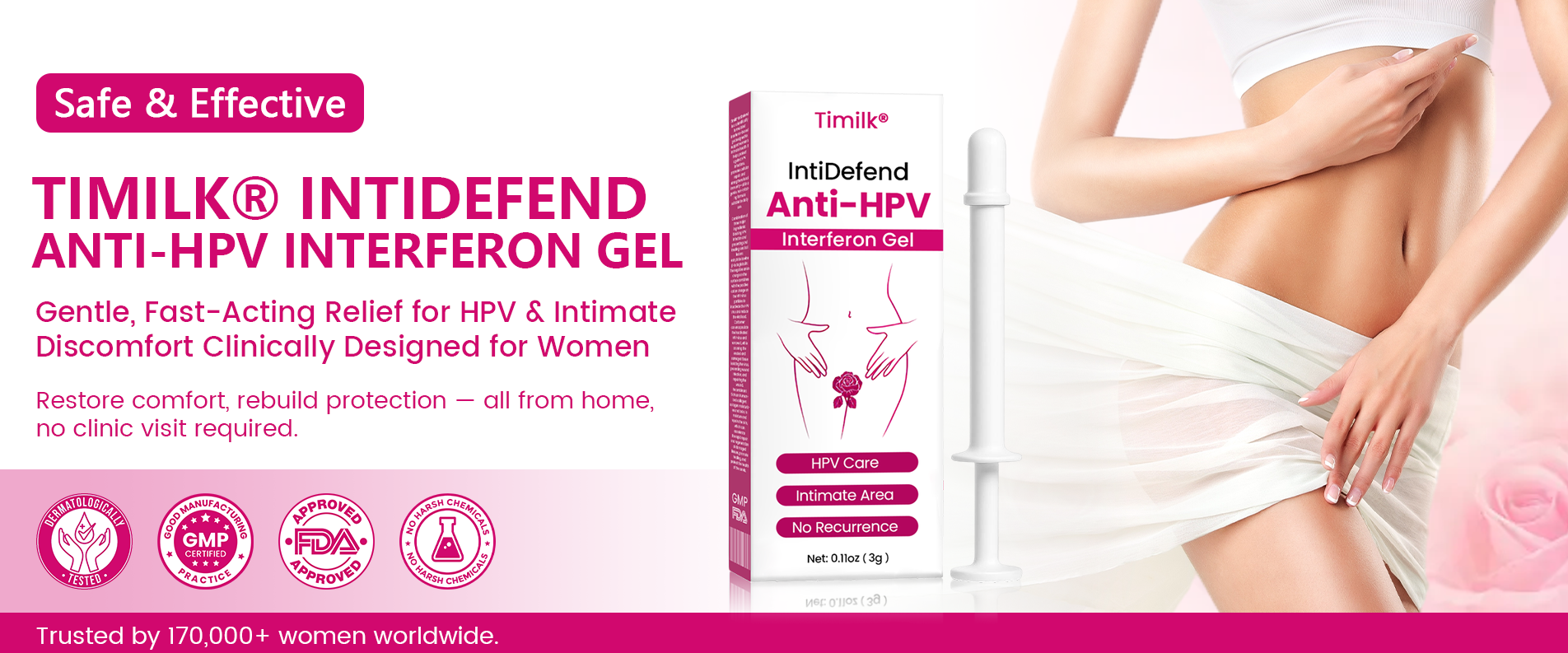 Timilk® IntiDefend Anti-HPV Interferon Gel uses a clinically-backed interferon complex and a bioactive pH-balanced formula to target HPV at its source—beneath the mucosal surface—not just relieve surface symptoms