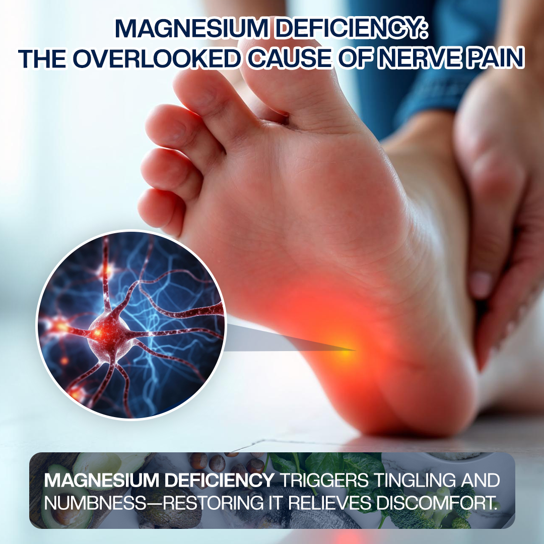 The nerves in your feet rely on magnesium to function properly, ensuring clear communication of sensations to and from the brain. But modern diets and lifestyles leave many people running on empty. Lack of magnesium can disrupt nerve balance and cause burning, tingling, and numbness. Adequate magnesium restores nerve function, easing discomfort and supporting daily mobility.