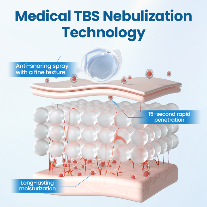 38x Efficiency Advantage – Compared to standard sprays, TBS mist achieves up to 38 times higher tissue absorption, resulting in faster, longer-lasting snore reduction.