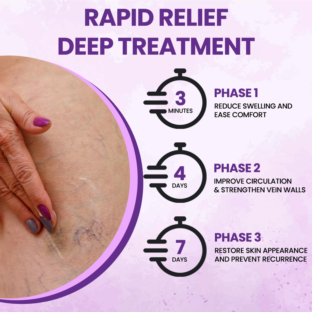 Whether you're facing mild or advanced varicose veins, our cream is specially formulated to relieve pain and reduce swelling—making it effective at every stage of the condition. It targets discomfort across key areas of the legs, including the thighs, calves, and ankles, providing soothing relief where it's needed most.