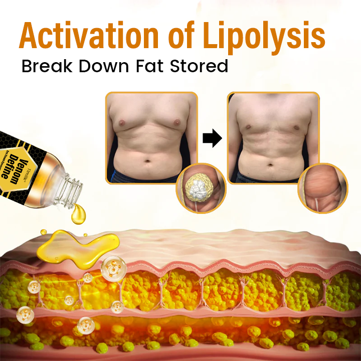 TimilkĀ® VenomDefine Bee Venom Oil contains a powerful blend of active ingredients, with one of the core components being a natural bee venom extract. Its key compound, Melittin, activates the bodyās lipolysis mechanism, penetrating deep into the subcutaneous fat layer to target localized fat deposits. This helps break down excess fat cells, effectively reducing chest fat accumulation and glandular enlargement in men.